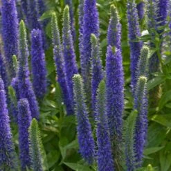 Veronica spicata ‘Royal Candles’ (Speedwell) is an outstanding upright growing Speedwell with large, attractive deep-green leaves and long blooming spikes of deep purple-blue flowers.
